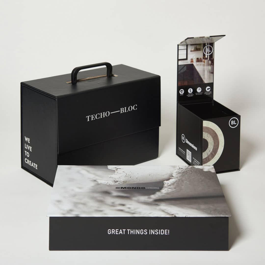 The A&D sample box is the ideal solution for presenting your material collections to architects and designers. Presentation Ultima designs and manufactures custom boxes containing cut and printed samples to facilitate the identification and selection of your products.